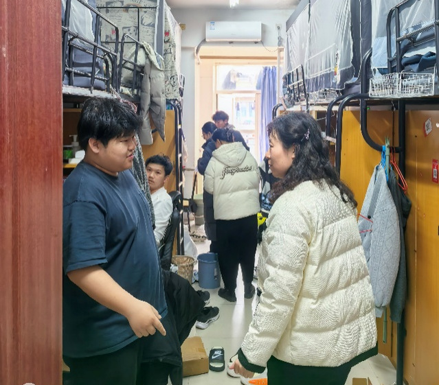 走访过程中,辅导员对照宿舍内务卫生标准,细致检查物品摆放、卫生清洁等情况,现场指出问题并督促学生及时整改,引导学生养成良好生活习惯。同时,反复叮嘱学生强化安全防范意识,严格遵守宿舍管理规定,杜绝违规用电、私拉乱接电线、存放违章电器等安全隐患。